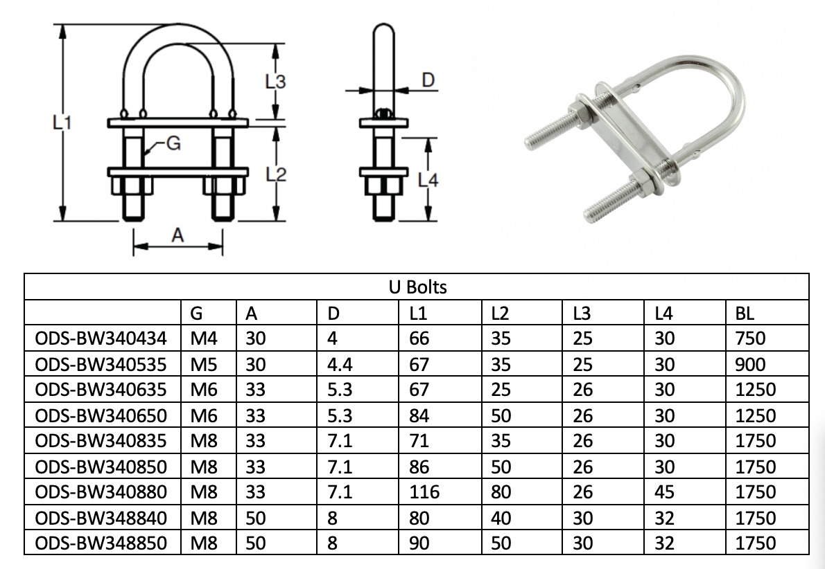 Browse these categories as well: U Bolts M4 M5 M6 M8 316 Stainless Steel Ubolts, U-Bolt